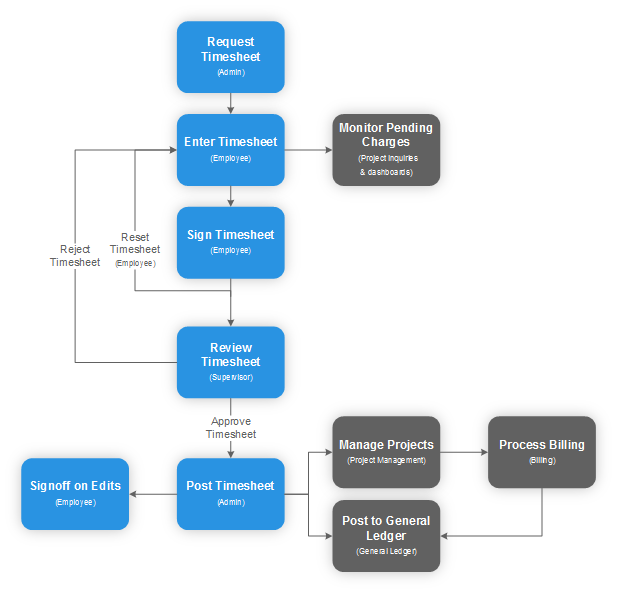 The flowchart provides an overview of the basic timesheet process.